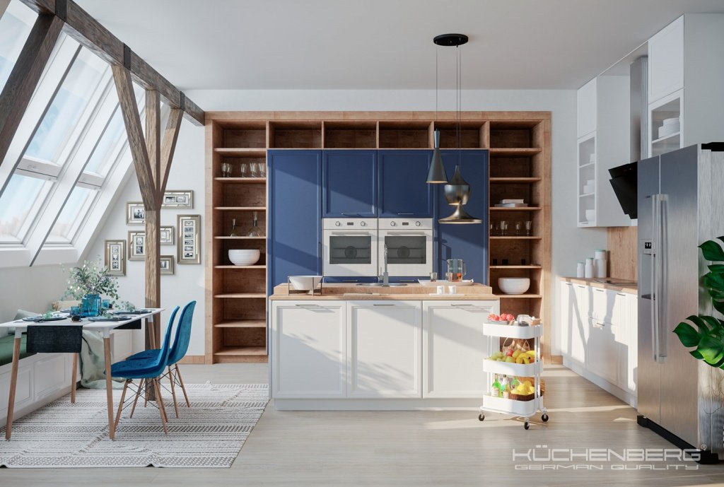 При выборе цвета для кухонного интерьера полуночный синий оттенок стал в последнее время новой тенденцией. «Он смотрится изысканно и драматично», — объясняет Иэн Макколган. Компания-гигант по обустройству дома сообщает, что за последний год пользователи Pinterest искали этот стильный оттенок на 45% чаще. Иэн продолжает: «Этот уникальный оттенок еще больше выделяется на фоне светлых столешниц и в сочетании с серебряными вставками».